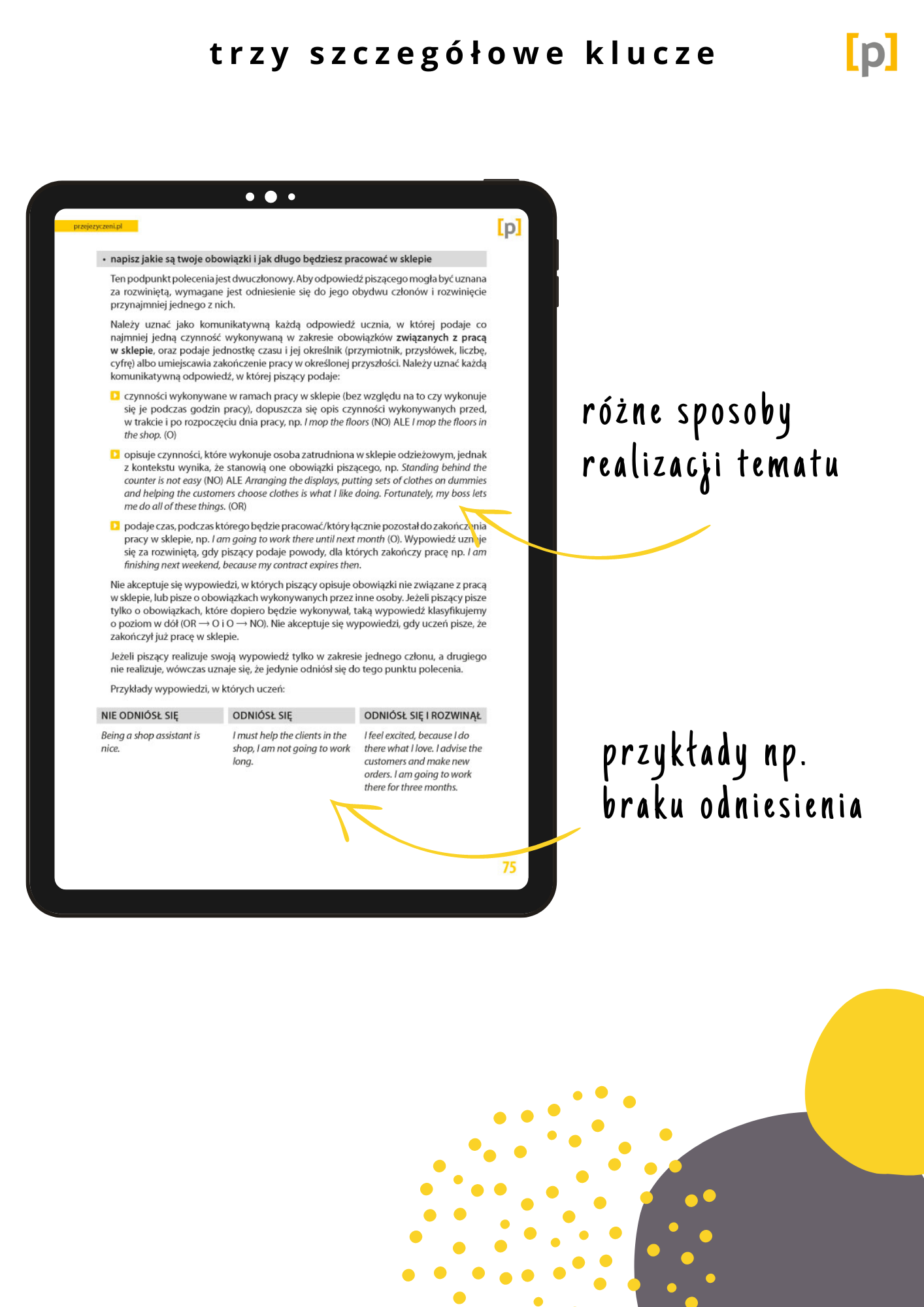 - 15 tematów wypowiedzi pisemnej, idealnie zgodnych z wymaganiami egzaminacyjnymi.
