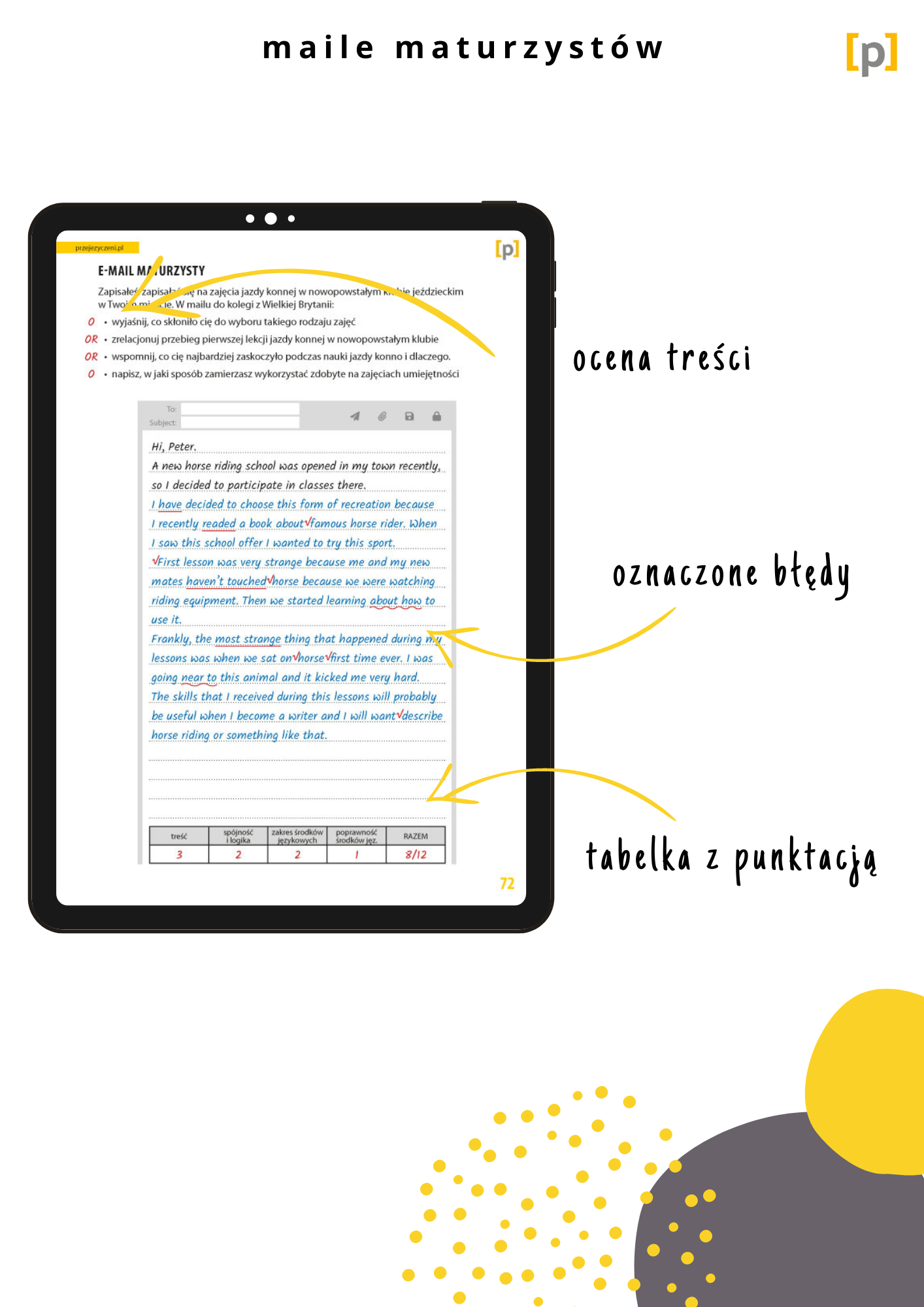 - Trzy maile napisane przez maturzystów, zweryfikowane przez doświadczonego egzaminatora.