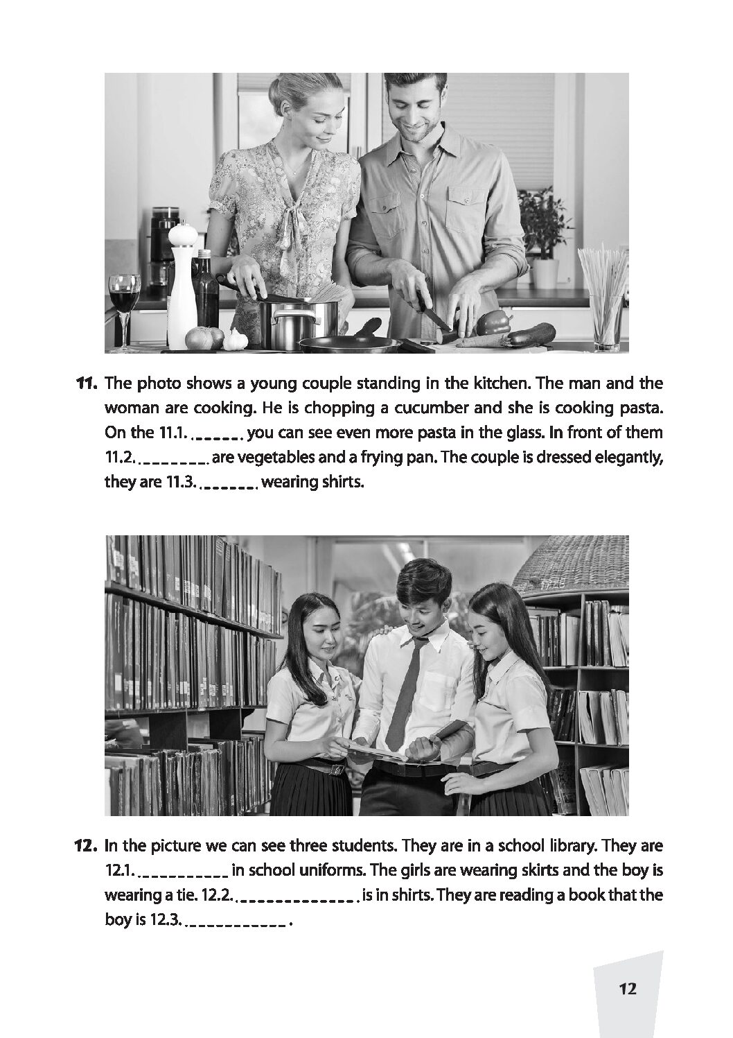 Uzupełnianie luk (opis obrazka) – 12 obrazków wraz z tekstami
