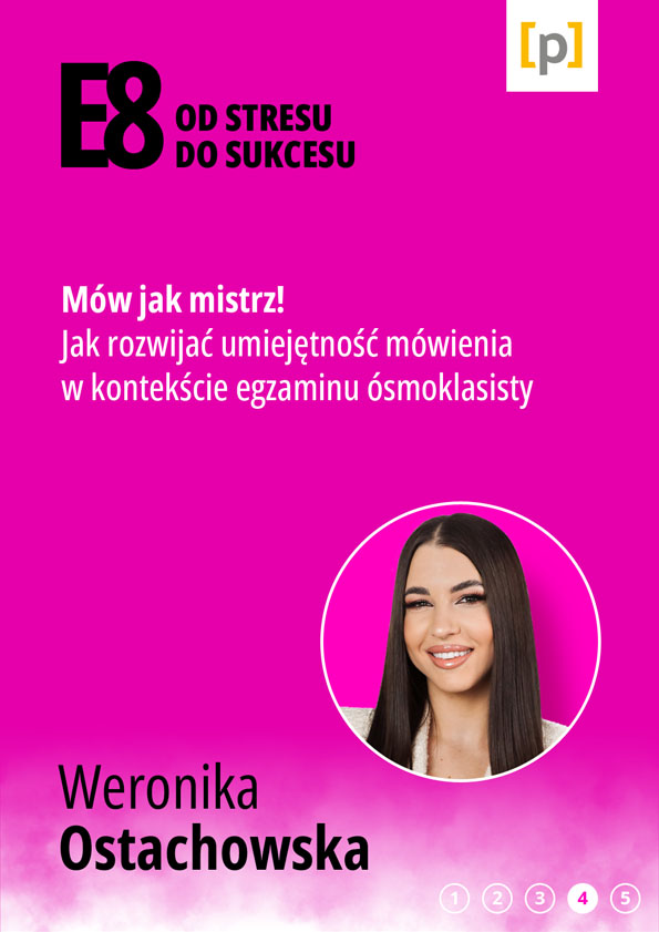 Poznasz egzamin ósmoklasisty od podszewki i dowiesz się, na co zwracać uwagę podczas przygotowań do części ze środków i funkcji językowych, readingu, listeningu i speakingu.